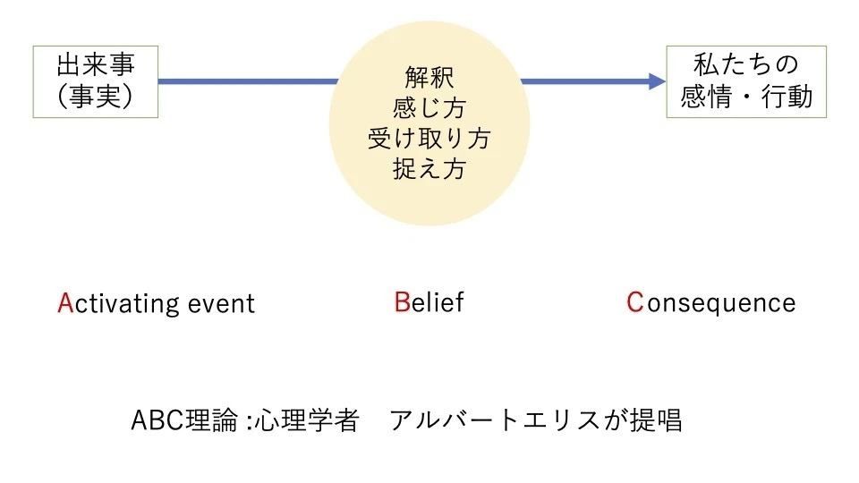 ABC理論は、1950年代に心理学者アルバート・エリスが提唱した理論です。以下の3つの要素から成り立っています。